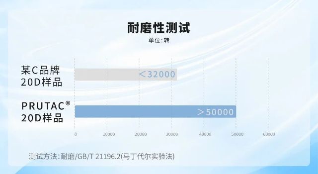 根據(jù)GB /T 21196.2 《紡織品 馬丁代爾法織物耐磨性的測定》,相同組織下,PRUTAC?面料耐磨性能優(yōu)于采樣的某C品牌面料。