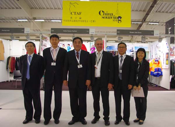 開幕當(dāng)天上午,中國紡織工業(yè)聯(lián)合會會長王天凱,副會長張延愷,會長助理、中國國際貿(mào)易促進(jìn)委員會紡織行業(yè)分會常務(wù)副會長徐迎新等領(lǐng)導(dǎo),在法蘭克福展覽(法國)公司總裁麥尚朋的陪同下參觀展會,并與參展企業(yè)進(jìn)行了深入交流。