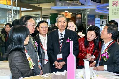 中國(guó)紡織工業(yè)協(xié)會(huì)副會(huì)長(zhǎng)許坤元(右三)和其他領(lǐng)導(dǎo)同志在中國(guó)貿(mào)促會(huì)紡織分會(huì)副會(huì)長(zhǎng)徐迎新(左三)的陪同下參觀展會(huì)