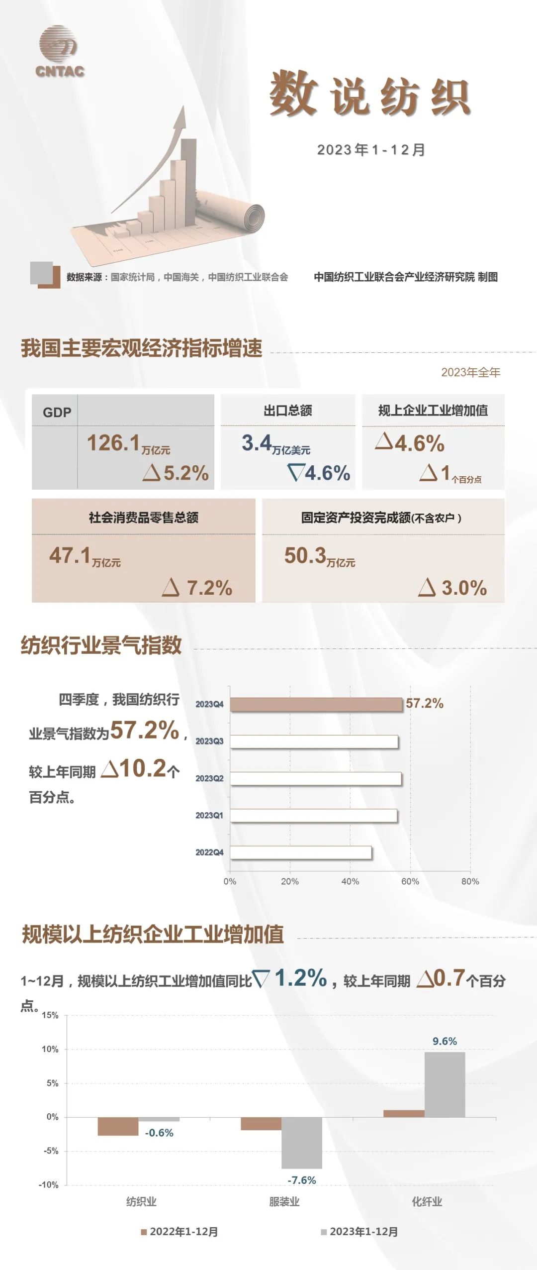 您現(xiàn)在的位置是:首頁 > 要聞 “數(shù)”說紡織:2023年1~12月 來源:中國紡織工業(yè)聯(lián)合會產(chǎn)業(yè)經(jīng)濟研究院 發(fā)布日期:2024-02-20 字體: 【小】 【中】 【大】 分享: 熱門文章: 2025intertextile春夏 | “友禮”同享齊觀展... [2025-02-19] 2024年我國紡織行業(yè)經(jīng)濟運行總體平穩(wěn) [2025-02-17] 聚焦綠色智慧融合 展示產(chǎn)業(yè)用紡織品新趨勢 [2025-02-11] 響應(yīng)政策 落實服務(wù) | PH Value義烏展全力“備戰(zhàn)”中 [2025-02-11] 【亮星季】第一期正式開啟 | 商貿(mào)先行,品質(zhì)好禮享不停 [2025-02-10] 展會直通車
